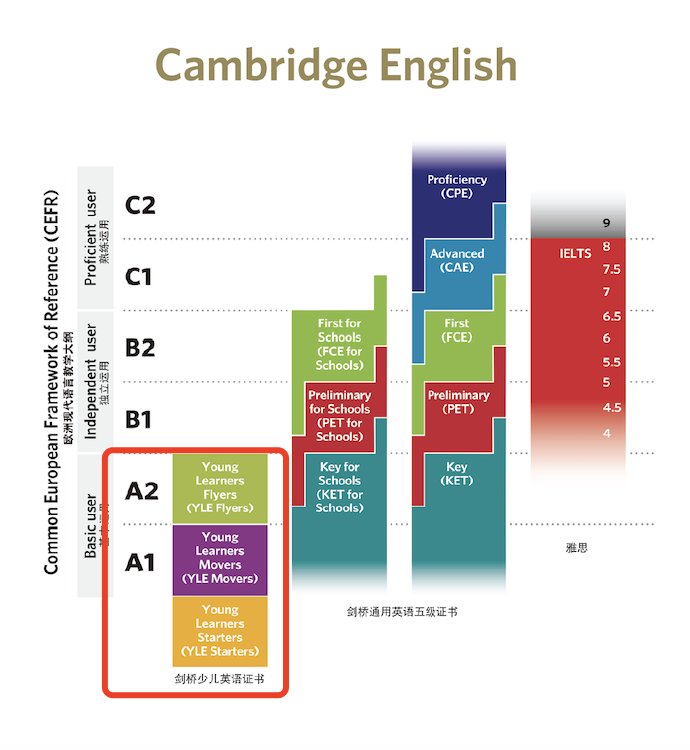 剑桥体系是目前能够做到衡量一个中国学生从零基础到成人母语水平的科学学习和评测体系。从纷乱模糊的小学英语,到难度徒增的初中英语,再到越来越靠近雅思的高中英语,一个标准可以全部解决。那么我们直接从小学少儿和青少段直接了解: